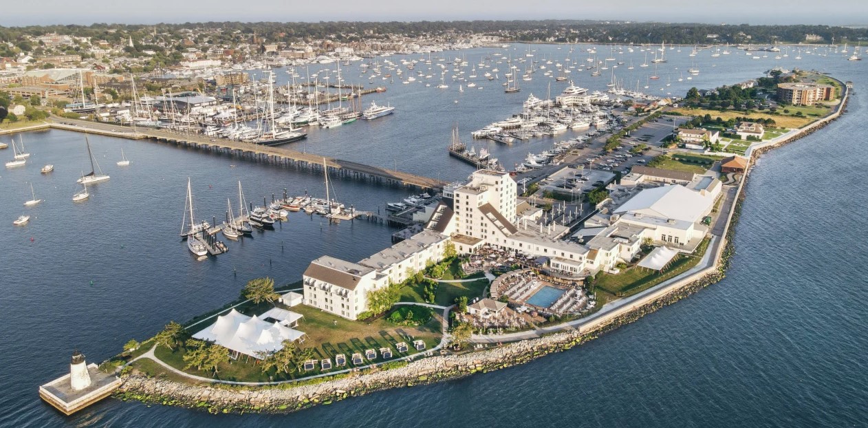 an aerial photo of the hotel on a sunny day